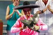 Petenis Spanyol Rafael Nadal memperlihatkan trophy juara nya setelah mengalahkan petenis AS Taylor Fritz dalam babak final Turnamen Tenis Meksiko Terbuka, di Stadion Princess Acapulco, Acapulco, Meksiko, Sabtu (29/2/2020). Nadal berhasil menjuarai turnamen ini untuk ketiga kalinyai setelah menang dua set langsung atas Taylor Fritz 6-3 dan 6-2. ANTARA FOTO/Reuters- Henry Romero/hp.