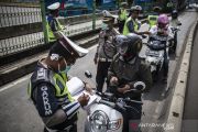 Polisi Lalu Lintas menilang pengendara sepeda motor yang melintas di jalur bus TransJakarta di Jalan Sultan Agung, Jakarta, Selasa (3/3/2020). Kurangnya kesadaran masyarakat akan pentingnya disiplin dan keselamatan dalam berkendara menjadi salah satu penyebab utama terus meningkatnya pelanggaran lalu lintas di Jakarta. ANTARA FOTO/Aprillio Akbar/pras.