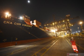 Kapal CMA CGM Virginia bersandar di Pelabuhan JICT Tanjung Priok, Jakarta Utara, Jumat (6/3/2020). Kepala Kantor Kesehatan Pelabuhan Tanjung Priok Kementerian Kesehatan Jefri Hasurungan Sitorus menyatakan kapten pengganti kapal CMA CGM Virginia berkebangsaan Ukraina, Mykola Alyuta tidak menunjukkan gejala suspect virus Corona namun tetap menjalani proses observasi di RS Port Medical CenterTanjung Priok. ANTARA FOTO/Indrianto Eko Suwarso/hp.