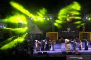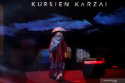 Model mengenakan busana rancangan Kursien Kazai saat peragaan busana Sasirangan di kawasan Siring Menara Pandang Banjarmasin, Kalimantan Selatan, Sabtu (7/3/2020). Pemerintah Kota Banjarmasin berupaya menjaga kain khas budaya Banjar dengan mengadakan peragaan busana yang menampilkan busana sasirangan karya desainer Nasional Kursien Kazai pada Puncak acara Banjarmasin Sasirangan Festival 2020. ANTARA FOTO/Bayu Pratama S/aww.