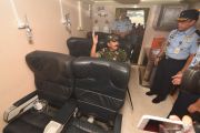 Panglima TNI Marsekal (TNI) Hadi Tjahjanto (kedua kiri) didampingi Kadiskesau Marsma TNI Isdwiranto (tengah) melihat sejumlah fasilitas saat meninjau Kontainer Isolasi Medik Udara (KIMU) TNI AU yang terpasang pada pesawat Hercules C-130 A-1327 di Skadron Teknik 021 Lanud Halim Perdanakusuma, Jakarta Timur, Rabu (11/3/2020). Kontainer Isolasi Medik Udara (KIMU) tersebut khusus digunakan untuk mengisolasi pasien yang terindikasi COVID-19 saat proses evakuasi menggunakan pesawat. ANTARA FOTO/Indrianto Eko Suwarso/hp.