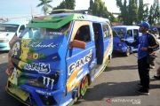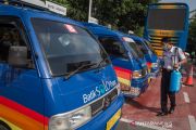 Anggota Tagana menyemprotkan disinfektan pada angkutan kota (angkot) di Padang, Sumatera Barat, Selasa (17/3/2020). Pemkot Padang melalui taruna siaga bencana (tagana) Dinas Sosial bersama Dinas Perhubungan melakukan penyemprotan disinfektan di sarana transportasi umum seperti bus trans Padang dan angkutan kota (angkot) guna mencegah penyebaran COVID-19. ANTARA FOTO/Iggoy el Fitra/pras.