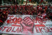 Sejumlah mahasiswa berunjuk rasa di halaman Pengadilan Negeri Bandung, Jawa Barat, Rabu (18/3/2020). Unjuk rasa yang dilakukan oleh Ikatan Mahasiswa Muhammadiyah tersebut menuntut agar Pengadilan Negeri Bandung membatalkan eksekusi aset berupa rumah panti asuhan milik Muhammadiyah di Bandung. ANTARA FOTO/Raisan Al Farisi/hp.