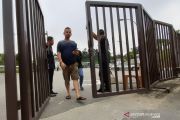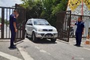 Dua petugas keamanan membuka pintu untuk mobil warga Malaysia yang hendak pulang ke negara asalnya melalui Pos Lintas Batas Negara (PLBN) Entikong di Kabupaten Sanggau, Kalimantan Barat, Rabu (18/3/2020). Terhitung Rabu (18/3) hingga 14 hari kedepan Pemerintah Malaysia secara resmi menutup pintu perbatasan Tebedu guna mencegah penyebaran virus COVID-19, sementara bagi warga negara Malaysia di Indonesia yang ingin kembali ke negara asalnya masih diperbolehkan pulang melalui PLBN Entikong. ANTARA FOTO/Agus Alfian/jhw/hp.