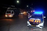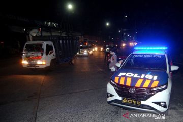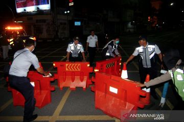 Petugas kepolisian mengatur lalu lintas saat penutupan jalur Pantura dan dialihkan ke jalur lingkar utara (Jalingkut), Tegal, Jawa Tengah, Senin (22/3/2020) malam. Pemerintah Kota Tegal dan Polres Tegal hingga 14 hari mendatang melakukan "lockdown" lokal dengan menutup jalur Pantura yang melintasi Kota Tegal, akses masuk Alun-alun Tegal dan mematikan sebagian lampu jalan protokol guna pembatasan kendaraan yang akan masuk ke Kota Tegal dan mencegah adanya kerumunan massa di jalan untuk mencegah penyebaran COVID-19. ANTARA FOTO/Oky Lukmansyah/hp.