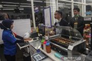 Wali Kota Palangkaraya Fairid Naparin (tengah) bersama tim Gugus Tugas Pencegahan dan Penanganan COVID-19 Palangkaraya melakukan razia di minimarket di kawasan kota Palangkaraya, Kalimantan Tengah, Selasa (24/3/2020) malam. Dalam razia tersebut warga diminta mengurangi aktivitas dalam keramaian guna mencegah penyebaran COVID-19. Saat ini, Pemerintah daerah setempat menetapkan satu pasien positif COVID-19 atau menjadi tiga pasien di Palangkaraya. ANTARA FOTO/Makna Zaezar/pras.