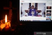 Uskup Agung Semarang Mgr Robertus Rubiyatmoko memimpin Perayaan Ekaristi Minggu Prapaskah V secara online melalui live streaming Youtube dan disaksikan dari Yogyakarta, Sabtu (28/3/2020). Keuskupan Agung Semarang memperpanjang masa peribadatan secara online hingga akhir April 2020 atau selama ada kebijakan baru terkait pandemi virus Corona, dengan demikian rangkaian ibadah Tri Hari Suci atau pekan suci Paskah juga dilakukan secara online. ANTARA FOTO/Andreas Fitri Atmoko/hp.