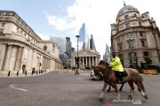 Polisi menaiki kuda saat berpatroli di London saat wabah COVID-19 di Inggris, Selasa (31/3/2020). ANTARA FOTO/REUTERS/John Sibley/aww.