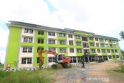 Suasanna kompleks Rumah Susun Sederhana Sewa (rusunawa) Nipah Kuning di Pontianak, Kalimantan Barat, Minggu (12/4/2020). Pemerintah Kota Pontianak telah menyiapkan Rusunawa Nipah Kuning berkapasitas 58 kamar yang telah dilengkapi dengan perabotan rumah tersebut sebagai tempat isolasi pasien COVID-19 yang masuk kategori Pasien Dalam Pengawasan (PDP) dengan gejala ringan dan Orang Tanpa Gejala (OTG). ANTARA FOTO/Jessica Helena Wuysang/aww.