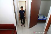 Seorang petugas keamanan memperlihatkan ruangan Rumah Susun Sederhana Sewa (rusunawa) Nipah Kuning di Pontianak, Kalimantan Barat, Minggu (12/4/2020). Pemerintah Kota Pontianak telah menyiapkan Rusunawa Nipah Kuning berkapasitas 58 kamar yang telah dilengkapi dengan perabotan rumah tersebut sebagai tempat isolasi pasien COVID-19 yang masuk kategori Pasien Dalam Pengawasan (PDP) dengan gejala ringan dan Orang Tanpa Gejala (OTG). ANTARA FOTO/Jessica Helena Wuysang/aww.