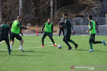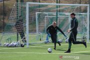 Pemain AC Milan Zlatan Ibrahimovic berlatih guna menjaga kebugaran saat jeda kompetisi akibat COVID-19 dengan klub Swedia Hammarby Stockholm, di Swedia, 13 April 2020. ANTARA FOTO/REUTERS/Philip O'Connor/aww.
