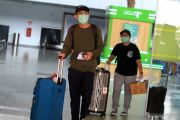 Sejumlah penumpang pesawat berjalan keluar dari pintu kedatangan di Bandara Supadio, Kabupaten Kubu Raya, Kalimantan Barat, Senin (13/4/2020). Terhitung mulai 13 April 2020 hingga waktu yang belum ditentukan, Pemerintah Provinsi Kalimantan Barat menetapkan peraturan bagi penumpang angkutan udara, laut maupun darat yang masuk ke Kalbar wajib menandatangani surat pernyataan sebagai Orang Dalam Pemantauan (ODP) dan bersedia melakukan karantina mandiri selama 28 hari sejak kedatangan guna memutus mata rantai penyebaran COVID-19. ANTARA FOTO/Jessica Helena Wuysang/wsj.