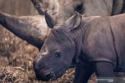 Seekor bayi badak putih yang baru lahir berada di dekat ibunya di Kebun Binatang Copenhagen, Denmark, Rabu (15/4/2020). ANTARA FOTO/Ritzau Scanpix/Niels Christian Vilmann/via REUTERS/wsj.