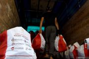Pekerja memasukkan paket bantuan sosial (bansos) yang akan disalurkan ke dalam truk di Gudang Food Station Cipinang, Jakarta, Rabu (22/4/2020). Pemerintah menyalurkan paket bansos masing-masing sebesar Rp600 ribu per bulan selama tiga bulan sebagai upaya untuk mencegah warga tidak mudik dan meningkatkan daya beli selama pandemi COVID-19 kepada warga yang membutuhkan di wilayah Jabodetabek. ANTARA FOTO/M Risyal Hidayat/wsj.