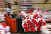 Pekerja membawa paket bantuan sosial (bansos) yang akan disalurkan di Gudang Food Station Cipinang, Jakarta, Rabu (22/4/2020). Pemerintah menyalurkan paket bansos masing-masing sebesar Rp600 ribu per bulan selama tiga bulan sebagai upaya untuk mencegah warga tidak mudik dan meningkatkan daya beli selama pandemi COVID-19 kepada warga yang membutuhkan di wilayah Jabodetabek. ANTARA FOTO/M Risyal Hidayat/wsj.