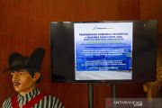 Tulisan informasi penutupan Bandara Adisutjipto di Maguwo, Sleman, DI Yogyakarta, Jumat (24/4/2020). Pemerintah menghentikan sementara seluruh aktivitas penerbangan komersial dalam dan luar negeri dari tanggal 24 April hingga 1 Juni 2020 untuk pengendalian transportasi selama masa mudik Lebaran sebagai upaya mencegah penyebaran COVID-19. ANTARA FOTO/Hendra Nurdiyansyah/aww.