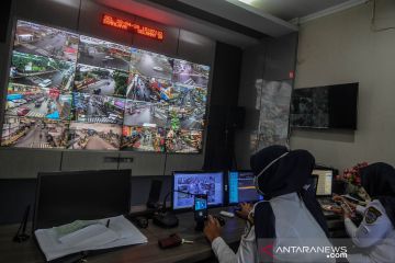 Operator Dinas Perhubungan (Dishub) Kota Tasikmalaya memantau arus lalu lintas di sejumlah titik persimpangan melalui CCTV di Area Traffic Control Sistem (ATCS) Kota Tasikmalaya, Jawa Barat, Selasa (28/4/2020). Menurut petugas ATCS, meskipun setiap 15 menit petugas mengimbau untuk menerapkan phisycal distancing dan tetap di rumah, selama pandemi COVID-19 nyaris semua titik terpantau tetap ramai hilir-mudik kendaraan roda dua dan roda empat. ANTARA FOTO/Adeng Bustomi/pras.