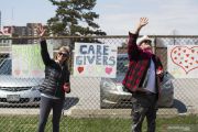 Orang-orang melambaikan tangan kepada para petugas perawat kesehatan dalam sebuah parade mobil di luar Eatonville Care Center di Toronto, Kanada, Selasa (28/4/2020. Tercatat sebanyak 49.815 kasus terkonfirmasi COVID-19 di Kanada, dengan 2.852 orang meninggal dunia akibat penyakit ini. ANTARA FOTO/Xinhua-Zou Zheng/hp.