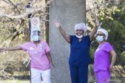 Sejumlah petugas perawat kesehatan melambaikan tangan sebagai ucapan terima kasih kepada orang-orang yang berpartisipasi dalam sebuah parade mobil di luar Eatonville Care Center di Toronto, Kanada, Selasa (28/4/2020). Tercatat 49.815 kasus terkonfirmasi COVID-19 di Kanada, dengan 2.852 orang meninggal dunia akibat penyakit ini. ANTARA FOTO/Xinhua-Zou Zheng/hp.
