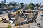 Sejumlah pekerja menyelesaikan proyek pembangunan Underpass Senen Extension di kawasan Senen, Jakarta, Minggu (3/5/2020). Meski dalam penerapan Pembatasan Sosial Berskala Besar (PSBB) akibat pandemi COVID-19, proyek yang menelan anggaran mencapai Rp121,1 miliar dan ditargetkan selesai pada Desember 2020 dah diharapkan dapat mengurai kemacetan di kawasan tersebut. ANTARA FOTO/M Risyal Hidayat/aww.