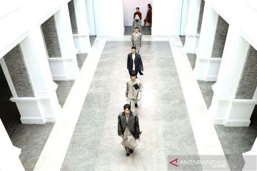 Para model menampilkan kreasi busana Dejin dalam pertunjukan langsung secara daring (livestream show) China Fashion Week 2020/2021 AW Collection di Beijing, China, Minggu (3/5/2020). Kreasi Dejin dan Link Unique ditampilkan via livestreaming pada Minggu (3/5) tanpa penonton di lokasi karena pandemi COVID-19. ANTARA FOTO/Xinhua/Chen Jianli/pras.