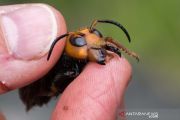 Ahli Serangga dari Departemen Pertanian Negara Bagian Washington Chris Looney memegang sepasang Tabuhan (lebah) Raksasa Asia yang terjerat perangkap di dekat Blaine, Washington, Amerika Serikat, Kamis (23/4/2020). Foto diambil pada 23 April 2020. ANTARA FOTO/Departemen Pertanian Negara Bagian Washington/Karla Salp/Handout via REUTERS/wsj.