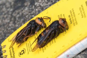 Sepasang Tabuhan (lebah) Raksasa Asia terjerat perangkap yang dipasang Ahli Serangga Departemen Pertanian Negara Bagian Washington Chris Looney di dekat Blaine, Washington, Amerika Serikat, Kamis (23/4/2020). Foto diambil pada 23 April 2020. ANTARA FOTO/Departemen Pertanian Negara Bagian Washington/Karla Salp/Handout via REUTERS/wsj.