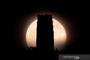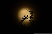 Siluet dahan pohon terlihat dengan latar belakang Supermoon atau Flower Moon yang terlihat di Foxhill, Tetbury, Inggris, 7 Mei 2020. ANTARA FOTO/REUTERS/Dylan Martinez/aww.