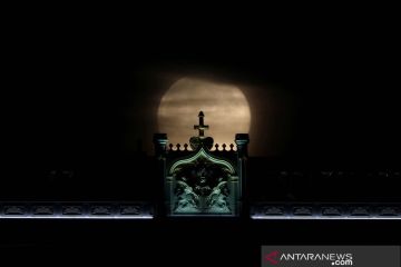 Supermoon atau Flower Moon terlihat di atas Tower Bridge, London, Inggris, 7 mei 2020. ANTARA FOTO/REUTERS/Simon Dawson/aww.
