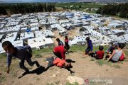 Sejumlah bocah pengungsi Suriah bermain di kamp pengungsi Suriah di lembah Bekaa, saat Lebanon memperluas lockdown untuk memerangi penyebaran COVID-19 di Lebanon, 7 Mei 2020. ANTARA FOTO/ REUTERS / Ali Hashisho/aww.
