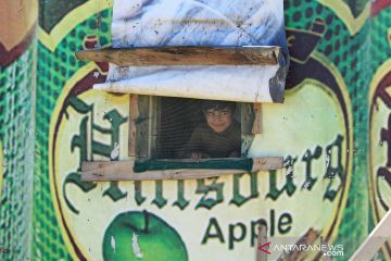 Seorang anak laki-laki pengungsi Suriah melihat keluar dari jendela tenda, saat Lebanon memperluas lockdown untuk memerangi penyebaran COVID-19 di sebuah kamp pengungsi Suriah di lembah Bekaa, Lebanon, 7 Mei 2020. ANTARA FOTO/ REUTERS / Ali Hashisho/aww.