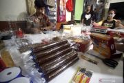 Pekerja mengemas dodol yang telah selesai dibuat di rumah produksi dodol Bojong Indira'f, Bojong Gede, Kabupaten Bogor, Jawa Barat, Selasa (12/5/2019). Produksi dodol dengan berbagai varian rasa seperti durian, ketan item dan orisinal tersebut mengalami peningkatan hingga 80 persen dari hari biasanya menjelang Lebaran dan dipasarkan ke sejumlah wilayah di Jabodetabek. ANTARA FOTO/Yulius Satria Wijaya/wsj.