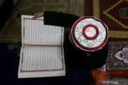Anak dari Imam Yordania Ahmad al Harasis membaca ayat suci Al Quran sebelum menunaikan shalat tarawih di rumahnya di tengah merebaknya COVID-19 di Amman, Yordania, Senin (11/5/2020). Pemerintah Yordania mengimbau warga muslim Yordania untuk tetap beribadah di rumah saja selama bulan suci Ramadhan karena sedang terjadi wabah virus Corona. ANTARA FOTO/REUTERS/Muhammad Hamed/wsj.