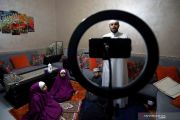 Imam Yordania Ahmad al Harasis menyampaikan dakwahnya melalui siaran langsung media sosial kepada para jamaah lainnya usai shalat tarawih berjamaah dari rumahnya di tengah merebaknya COVID-19 di Amman, Yordania, Senin (11/5/2020). Pemerintah Yordania mengimbau warga muslim Yordania untuk tetap beribadah di rumah saja selama bulan suci Ramadhan karena sedang terjadi wabah virus Corona. ANTARA FOTO/REUTERS/Muhammad Hamed/wsj.