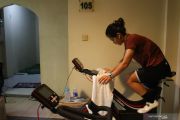 Pebalap sepeda putri Indonesia Ayustina Delia Priatna berlatih dalam Pemusatan Latihan Nasional di tengah berlanjutnya wabah virus Corona baru di Hotel Helios, Malang, Jawa Timur, Selasa (19/5/2020). Latihan untuk menghadapi Olimpiade Tokyo 2021 tersebut dilakukan di dalam ruangan untuk menghindari penularan COVID-19. ANTARA FOTO/Ari Bowo Sucipto/wsj.