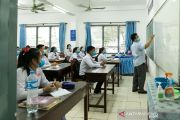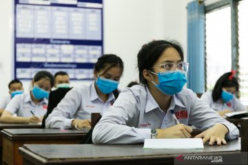 Para siswa mengenakan masker saat mengikuti kelas di sebuah sekolah di Vientiane, Laos, Selasa (19/5/2020). Pemerintah Laos mengumumkan bahwa semua siswa di negara itu dapat kembali bersekolah mulai 2 Juni mendatang, sementara kelas untuk siswa tingkat akhir sekolah dasar, menengah pertama, dan menengah atas sudah dimulai sejak Senin (18/5) kemaren. Kementerian Kesehatan Laos mengumumkan dua kasus terkonfirmasi COVID-19 pertamanya pada 24 Maret lalu melalui konferensi pers harian, dan sejauh ini, negara tersebut telah mendeteksi 19 kasus. ANTARA FOTO/Xinhua/Kaikeo Saiyasane/hp.