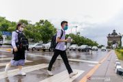 Sejumlah siswa mengenakan masker menyeberangi jalan saat pulang sekolah di Vientiane, Laos, Selasa (19/5/2020). Pemerintah Laos telah mengumumkan bahwa semua siswa di negara itu dapat kembali bersekolah mulai 2 Juni mendatang, sementara kelas untuk siswa tingkat akhir sekolah dasar, menengah pertama, dan menengah atas sudah dimulai sejak Senin (18/5) kemaren. Kementerian Kesehatan Laos mengumumkan dua kasus terkonfirmasi COVID-19 pertamanya pada 24 Maret lalu melalui konferensi pers harian, dan sejauh ini, negara tersebut telah mendeteksi 19 kasus. ANTARA FOTO/Xinhua-Kaikeo Saiyasane/hp.
