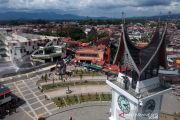 Seorang fotografer memotret suasana sepi libur Lebaran dari Jam Gadang Bukittinggi, Sumatera Barat, Senin (25/5/2020). Meskipun masih dalam masa PSBB hingga 29 Mei 2020, objek wisata aikonik di Sumbar itu masih dikunjungi pengunjung. ANTARA FOTO/Iggoy el Fitra/aww.