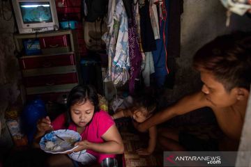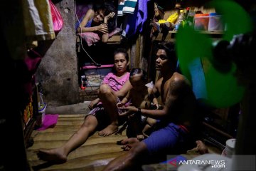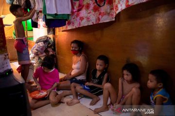 Loreto Vergara (47) berkumpul bersama keluarganya di ruangan yang sempit di dalam rumah gubuknya di tengah karantina wilayah akibat merebaknya COVID-19 di sebuah kawasan kumuh di Tondo, Kota Manila, Filipina, Senin (4/5/2020). Foto diambil 4 Mei 2020. ANTARA FOTO/REUTERS/Eloisa Lopez/wsj.