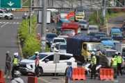 Sejumlah petugas gabungan dari Polres Bogor, Satpol PP dan Dishub Kabupaten Bogor melakukan pemeriksaan kendaraan di Check Pont Pembatasan Sosial Berskala Besar (PSBB), Simpang Gadog, Ciawi, Kabupaten Bogor, Jawa Barat, Rabu (27/5/2020). Kendaraan roda empat maupun dua yang melanggar aturan kebijakan PSBB Kabupaten Bogor di jalur wisata Puncak tersebut akan diputar balik kembali menuju Jakarta. ANTARA FOTO/Arif Firmansyah/hp.