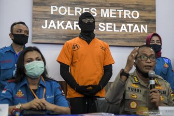 Aktor Dwi Sasono dihadirkan penyidik Satnarkoba pada rilis kasus narkoba di Polres Jakarta Selatan, Jakarta, Senin (1/6/2020). Pemeran di sejumlah film dan program televisi di Indonesia tersebut ditetapkan sebagai tersangka kasus kepemilikan narkoba dengan barang bukti ganja seberat 16 gram setelah ditangkap di rumahnya di kawasan Pondok Labu, Jakarta Selatan. ANTARA FOTO/Galih Pradipta/hp.