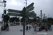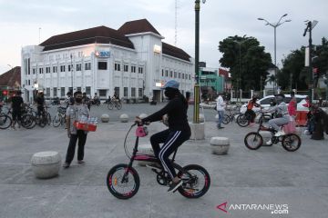 Sejumlah warga bersepeda di kawasan Titik Nol Kilometer Yogyakarta, DI Yogyakarta, Senin (8/6/2020). Gubernur DI Yogyakarta Sri Sultan HB X menginstruksikan Pemerintah Kota Yogyakarta untuk menertibkan masyarakat yang kembali beraktivitas di kawasan Titik Nol Kilometer dan Malioboro tanpa mematuhi protokol pencegahan penularan COVID-19 seperti menjaga jarak dan memakai masker. ANTARA FOTO/Hendra Nurdiyansyah/aww.