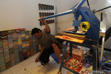 Seorang perajin membentuk pola sandal jepit di Keputran, Kemalang, Klaten, Jawa Tengah, Senin (15/6/2020). Menurut perajin, setelah tidak berproduksi akibat dampak dari pandemi COVID-19, kerajinan sandal jepit yang terbuat dari bahan dasar spon eva tersebut mulai bangkit dan telah memenuhi permintaan awal sebanyak 300 pasang dan dijual dari harga Rp15 ribu hingga Rp17.500 per pasang. ANTARA FOTO/Aloysius Jarot Nugroho/wsj.