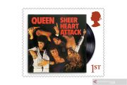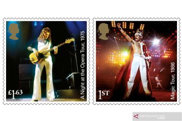 Dua desain perangko ekslusif edisi khusus Queen. Merayakan kariernya yang ke-50 tahun, band Queen bersama Royal Mail akan merilis 13 perangko eksklusif yang menampilkan gambar band tersebut. Seluruh 13 gambar ini terdiri dari delapan cover album, empat potret penampilan grup serta foto grup. Cover album yang dijadikan perangko adalah Queen II, Sheer Heart Attack, A Night at the Opera, News of the World, The Game, Greatest Hits, The Works, dan Innuendo. ANTARA FOTO/Royal Mail/Queen /Handout via REUTERS/pras.
