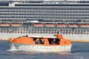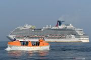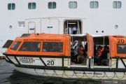 Sebuah 'Tender Boat' membawa barang bawaan dari Warga Negara Indonesia (WNI) yang menjadi Anak Buah Kapal (ABK) Kapal Pesiar MV Carnival Conquest saat evakuasi di Perairan Teluk Jakarta, Rabu (24/6/2020). Sebanyak 275 orang WNI terdiri dari 119 orang ABK kapal pesiar MV Carnival Dream dan 156 orang ABK kapal pesiar MV Carnival Conquest tersebut akan menjalani serangkaian tes kesehatan sesuai protokol pencegahan COVID-19 seperti swab test (PCR) sebelum menjalani isolasi mandiri di hotel. ANTARA FOTO/M Risyal Hidayat/hp.
