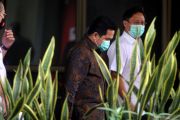 Menteri Badan Usaha Milik Negara (BUMN) Erick Thohir (kiri) dan Wakil Menteri BUMN Budi Gunadi Sadikin berjalan keluar dari pintu belakang Gedung Komisi Pemberantasan Korupsi (KPK) di Jakarta, Rabu (7/7/2020). Kehadiran Menteri Erick untuk berdiskusi terkait Pemulihan Ekonomi Nasional (PEN). ANTARA FOTO/Adam Bariq/app/hp.