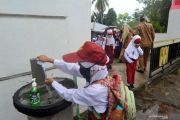 Sejumlah murid mencuci tangan sebelum masuk hari pertama sekolah di SDN 11 Marunggi Pariaman, Sumatera Barat, Senin (13/7/2020). Kota Pariaman bersama Kabupaten Pesisir Selatan, Kota Sawahlunto dan Kabupaten Pasaman Barat merupakan empat daerah di zona hijau di Sumatera Barat yang sudah memulai aktivitas belajar-mengajar di sekolah dengan pola tatap muka langsung dan menerapkan protokol kesehatan COVID-19. ANTARA FOTO/Iggoy el Fitra/hp.