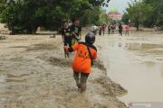 Petugas SAR dan warga berjalan melintasi lumpur akibat banjir bandang di Desa Radda, Kabupaten Luwu Utara, Sulawesi Selatan, Selasa (14/7/2020). Petugas BPBD Sulawesi Selatan masih menginventarisasi kerugian akibat banjir bandang pada Senin, 13 Juli 2020 malam yang mengakibatkan puluhan rumah terbawa arus, dua orang meninggal dunia dan tujuh orang hilang. ANTARA FOTO/Indra/wsj.