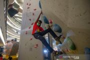 Atlet asal Papua Laela Alhadad berlatih panjat tebing untuk persiapan Pekan Olah Raga Nasional (PON) XX di arena Indo Climb, Mal FX Sudirman, Jakarta, Kamis (16/7/2020). Sebanyak 15 atlet panjat tebing Pelatda Papua berlatih di Jakarta karena fasilitas arena di daerah mereka sedang direnovasi untuk PON dan terkendala tidak bisa pulang karena adanya PSBB selama pandemi COVID-19. ANTARA FOTO/Aditya Pradana Putra/hp.