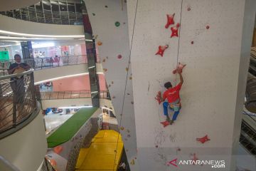 Atlet asal Papua Ladislaus Momtanam berlatih panjat tebing untuk persiapan Pekan Olah Raga Nasional (PON) XX di arena Indo Climb, Mal FX Sudirman, Jakarta, Kamis (16/7/2020). Sebanyak 15 atlet panjat tebing Pelatda Papua berlatih di Jakarta karena fasilitas arena di daerah mereka sedang direnovasi untuk PON dan terkendala tidak bisa pulang karena adanya PSBB selama pandemi COVID-19. ANTARA FOTO/Aditya Pradana Putra/hp.